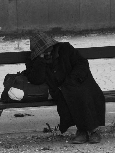 Je l’ai revu ce soir et ça m’a déchiré le cœur. Cette fois près de chez moi. Tellement émue que je suis obligée de vous raconter et tellement touchée que j’en ai eu la gorge serrée et les larmes aux yeux et je suis restée là, empotée, sans pouvoir dégainer. J’avais mon petit chien dans les bras, et je l’ai vu. Ce petit monsieur. Adieu les chaussures de rando. Il avait un pantalon en toile de coton, humide aux fesses. Des chaussures sans chaussettes pas à sa taille. Et juste une petite chemise de bucheron. Un parapluie cassé sous le bras et son petit sac à ouvert sans fermeture éclair. Je voulais l’interpeller, je voulais lui dire, ATTENDEZ MONSIEUR ATTENDEZ ! Il avait son petit regard effrayé et l’air tellement gentil… Il marchait sur le bord du trottoir comme pour pas déranger. J’ai posé le chien, j’ai vite ouvert mon sac, je voulais lui donner des sous, lui dire d’attendre pour que j’aille vite chercher une couverture, prendre un gilet et lui donner, mais il est parti trop vite. Il a traversé la rue, toujours son air un peu souriant mais plus comme de la gêne et de la timidité et là je me suis dis : Mais où il va ? Mais où est ce qu’il va dormir ? Il va crever de froid ? Je me suis dis qu’il avait du être agressé par d’autres SDF et qu’il s’était fait voler les seuls biens qu’il possédait…