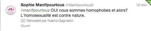 Allons allons… ne cédons pas aux préjugés… Ils ont le droit de manifester, ils ont le droit de ne pas être d’accord. D’ailleurs sur la question, au sein d’une même famille on peut ne pas s’accorder. Par exemple, mon père et moi, on n’est pas tout à fait d’accord sur la question du mariage Gay. Mais on se rejoint sur une chose: cette manif pour nous c’est à côté de la plaque et de la grosse instrumentalisation.