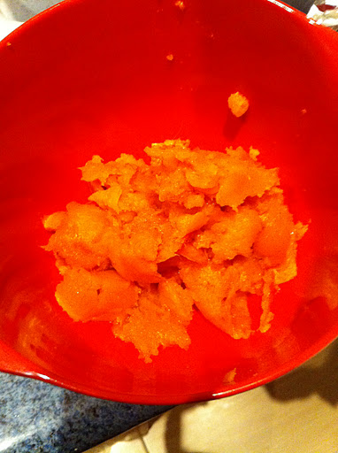 – Cuire, et retirer la chair du potimarron et la mettre dans un saladier