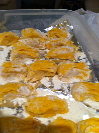 En tous cas, j’ai donc préparé comme j’ai pu des espèces de gros gnocchi que j’allais cuire ensuite chez mon chéri (oui c’est pas toujours pratique de vivre sur deux endroits différents :))