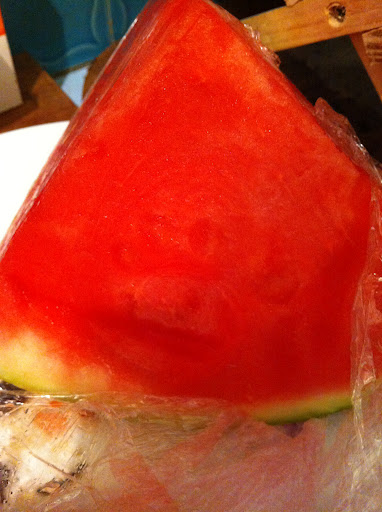 Et donc, de la pastèque coupée à profusion… et SANS PEPINS. oui il en existe des variétés sans pépins ou presque qui rendent la découpe forcément vachement plus facile.